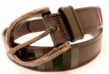 | 005 TRI-COLOR/LONG (3重巻き・3色細エナメルベルト) 3色を切り替えた、多重巻きの細いエナメル。ラメがあったり、ステッチが効いたりの小技満載 ⇒GO to photo!! |