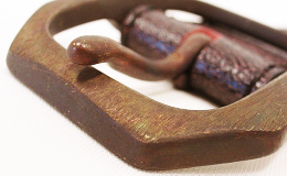 バーナーで炙って 色に変化をつけたバックル。 1つ1つ微妙に違う色に仕上がります。 |