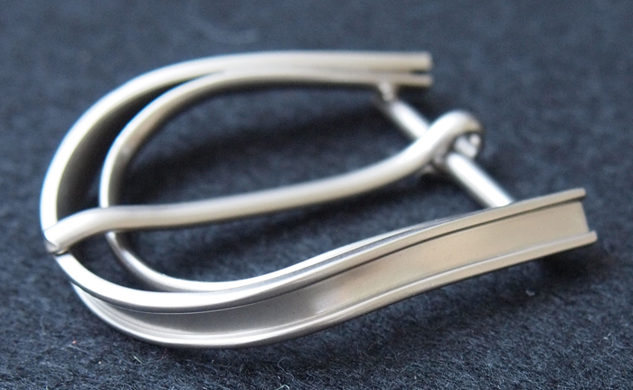 曲線が綺麗なバックル。 写真だと少し分かりにくいですが、 正面から見たときにも 曲線であることが分かる型。 合わせる革を選ばない優秀なバックル。 (写真左が現物に近い色です) |