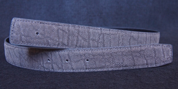リザード(トカゲ)型押し 反対面はシボ型押し 色は黒同士のリバーシブル ※お写真クリックで バックル付きのお写真を ご覧頂けます |