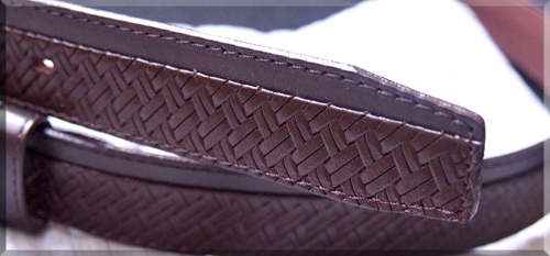 牛革のスムースと牛革のメッシュ型押しのコンビベルト。 |
