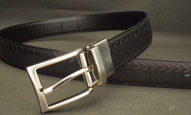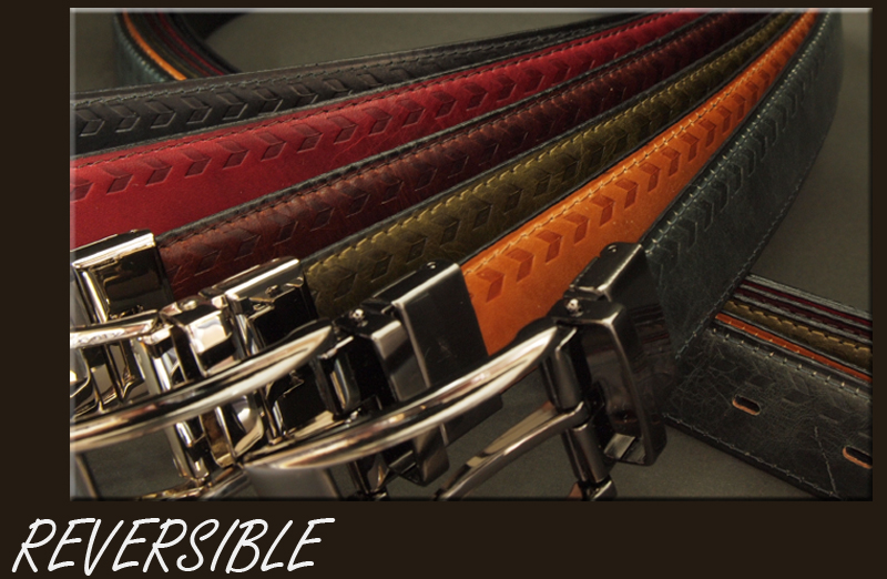 使い勝手が良い、黒のビジネスベルトを 矢絣柄の型押し(6色展開)とのリバーシブルで。 キップスキンに熱を加えながら型を押しています。 オイルが含まれている革なので、 熱に反応して濃い色でくっきりと型がでます。 両面ともに盛り上げ加工のきちんと系なので、 ビジネスシーンやフォーマルシーンにも! |